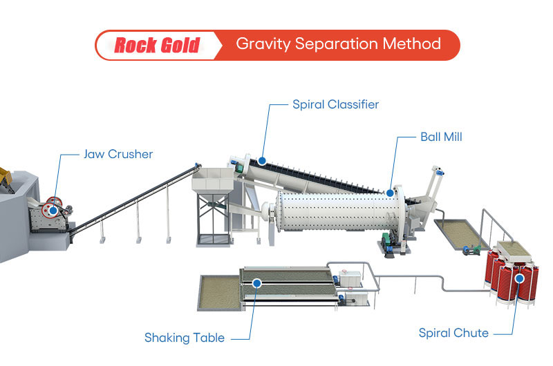 Gravity separation is commonly used in the processing of gold, tin, tungsten, chromium, manganese, zinc and other minerals. Hot sale gravity separation process equipment includes shaking table, centrifugal concentrator, spiral chute, jigger, etc.